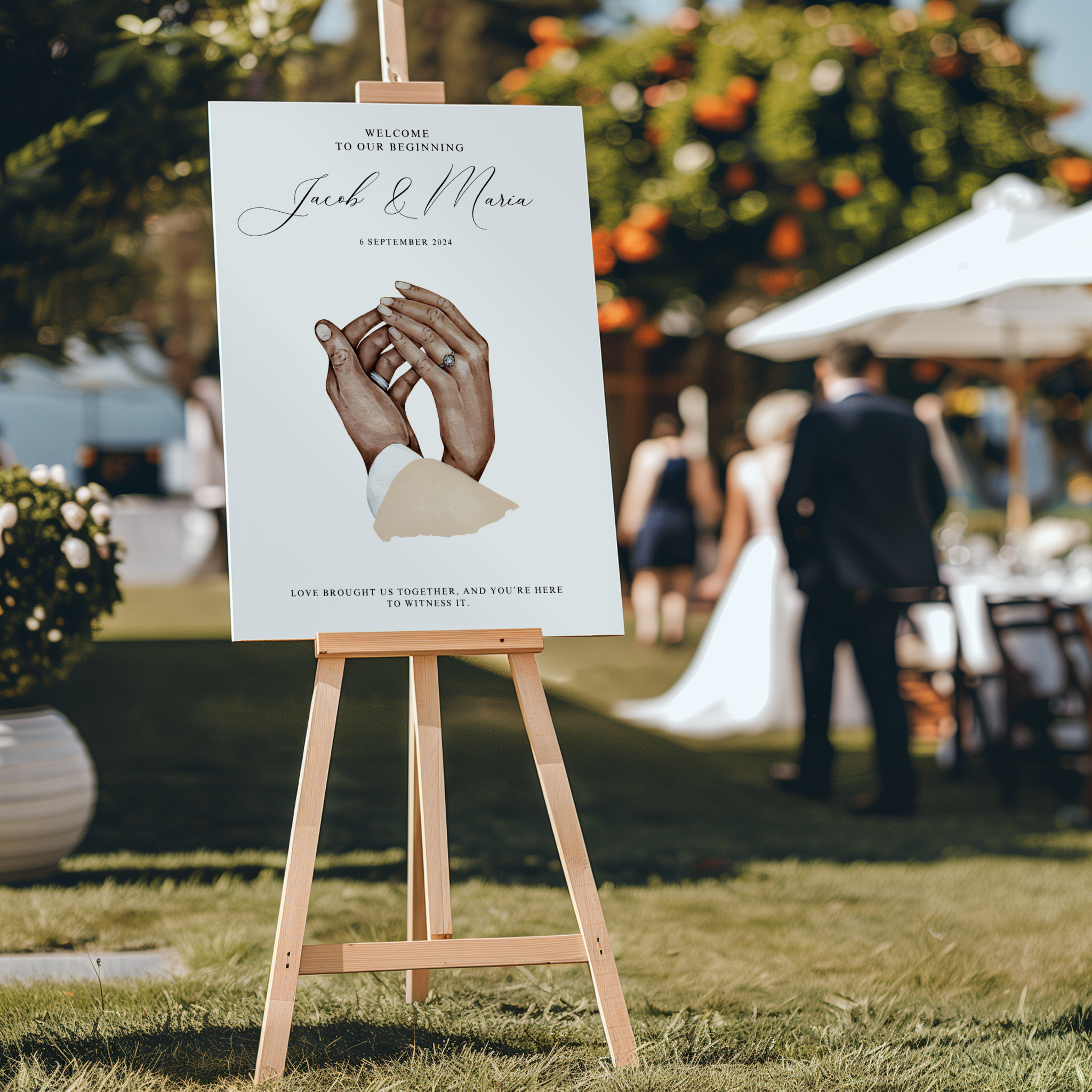 Welkomstbord Bruiloft - Hand In Hand - Licht + Donker