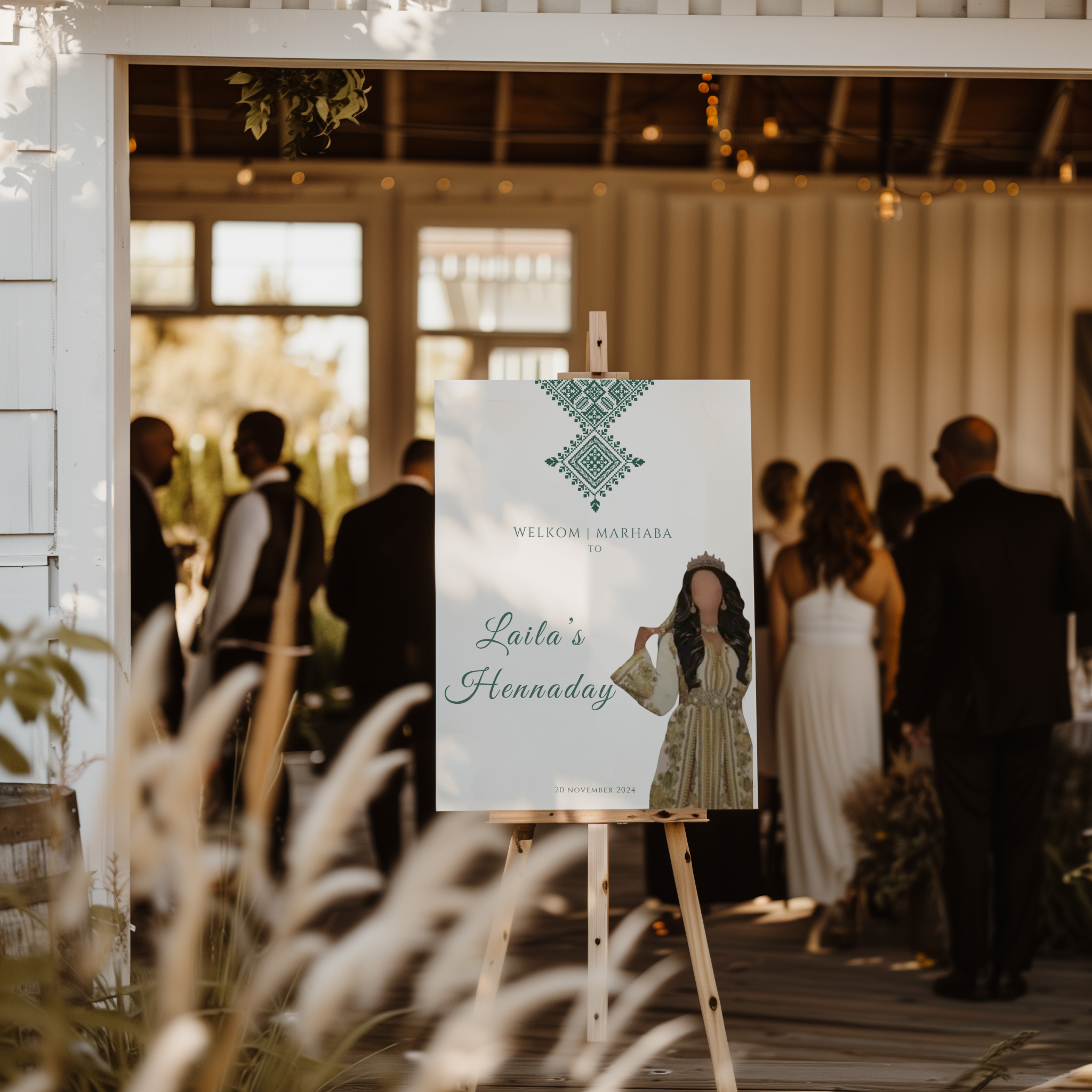 Welkomstbord Henna - Fessi Groen Met Bruid Marokkaans