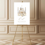 Een sfeervol ontwerp om Eid op een warme en feestelijke manier te vieren. Dit welkomstbord straalt zachtheid en stijl uit, en is een mooie toevoeging aan je Eid-decoratie. Perfect om gasten welkom te heten en een feestelijke sfeer te creëren tijdens deze bijzondere gelegenheid.