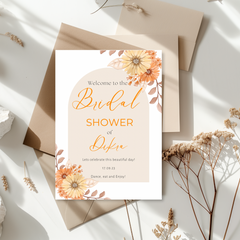 Welkomstbord Bridal Shower - Beige Boog Met Oranje Bloemen