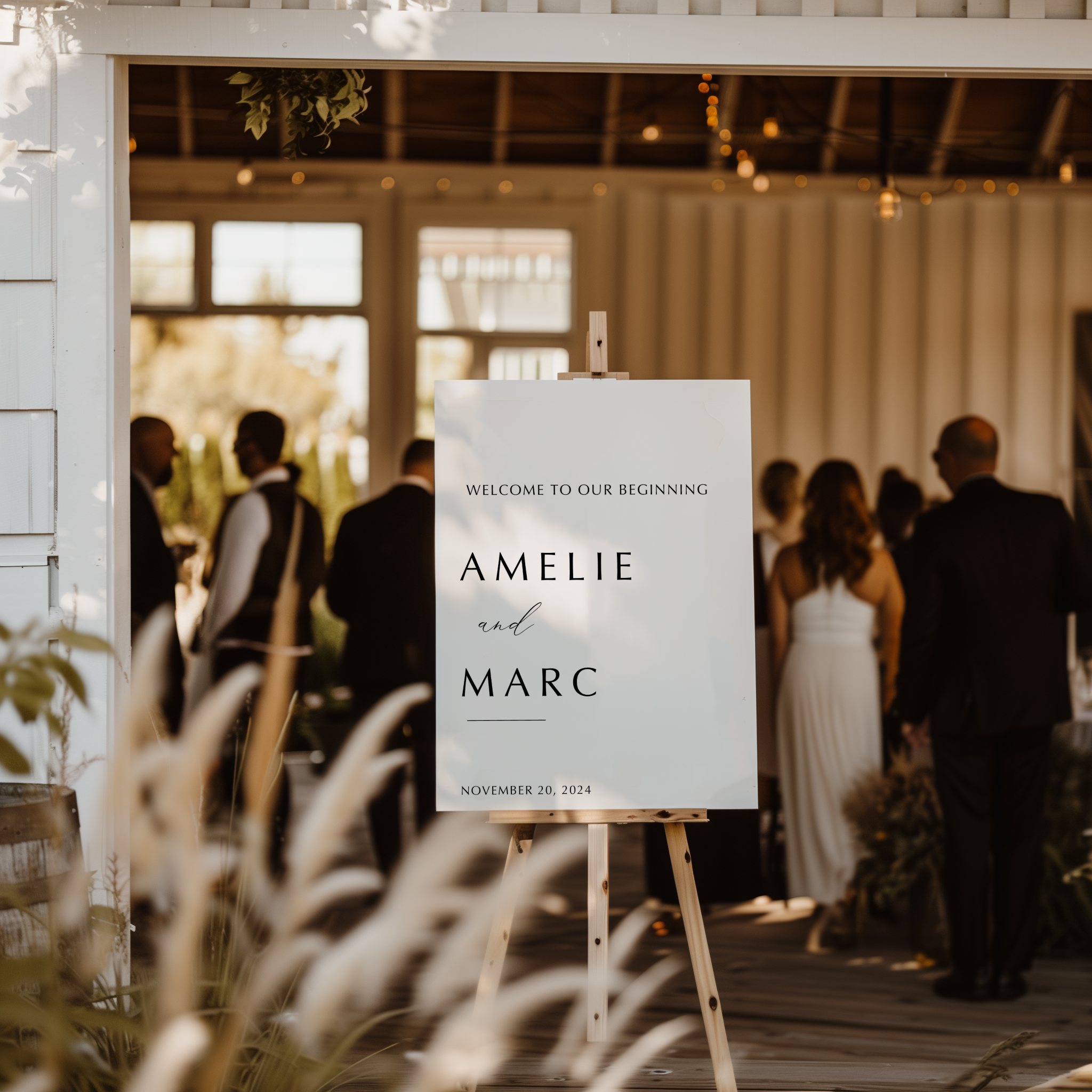 Dit elegante welkomstbord met een strak, klassiek design geeft direct de juiste sfeer aan je feest of ceremonie. De rustige opmaak en stijlvolle typografie maken het een subtiel, maar sfeervol detail bij de entree van jouw gelegenheid.