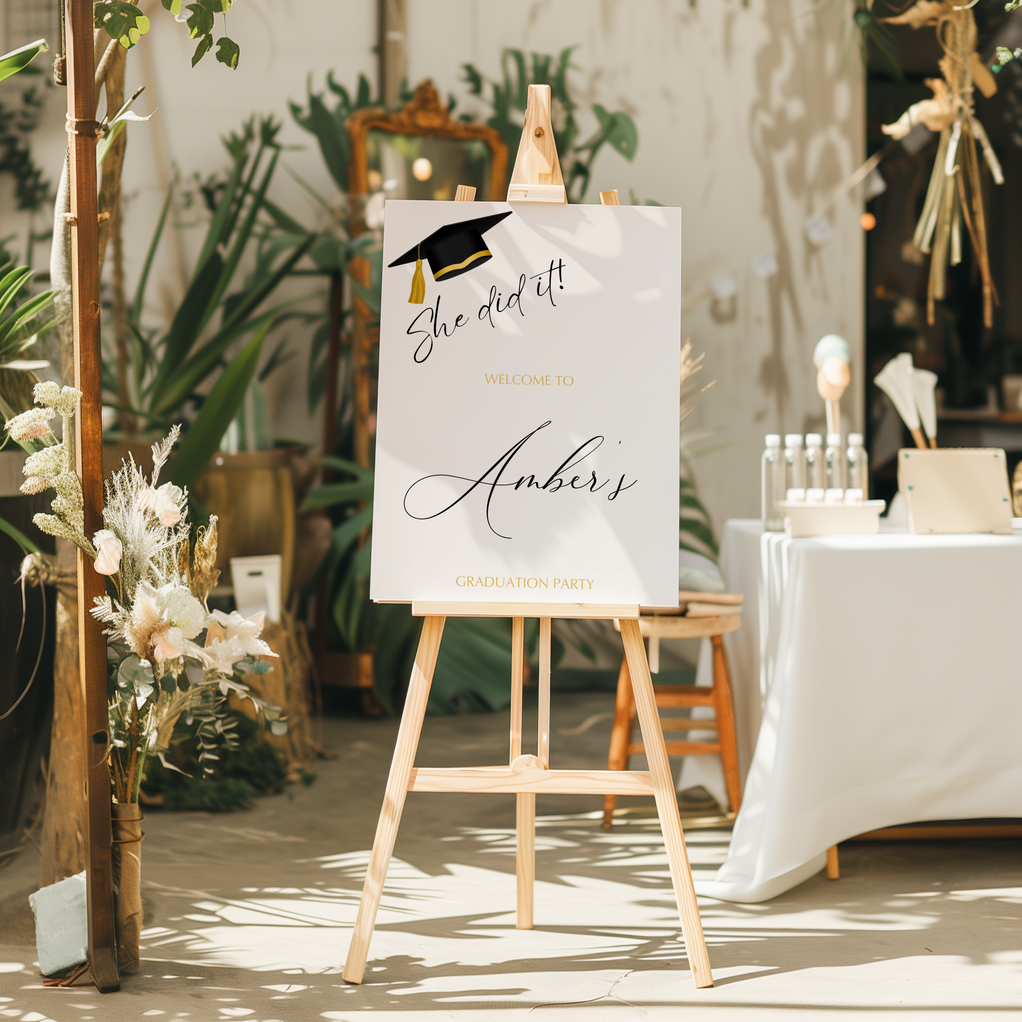 Welkomstbord Afstuderen - Afstudeerhoedje (S)he Did It