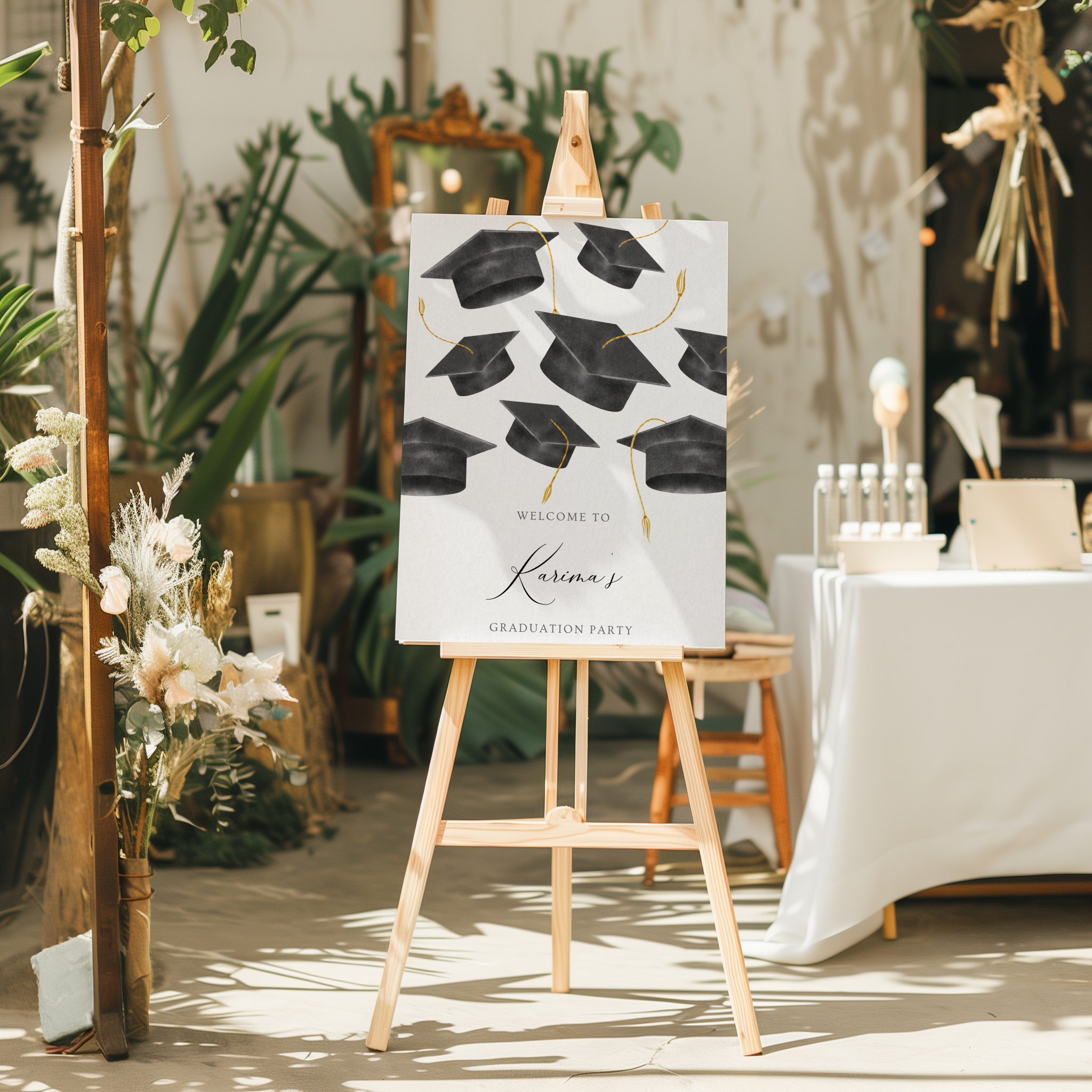 Welkomstbord Afstuderen - Afstudeerhoedjes