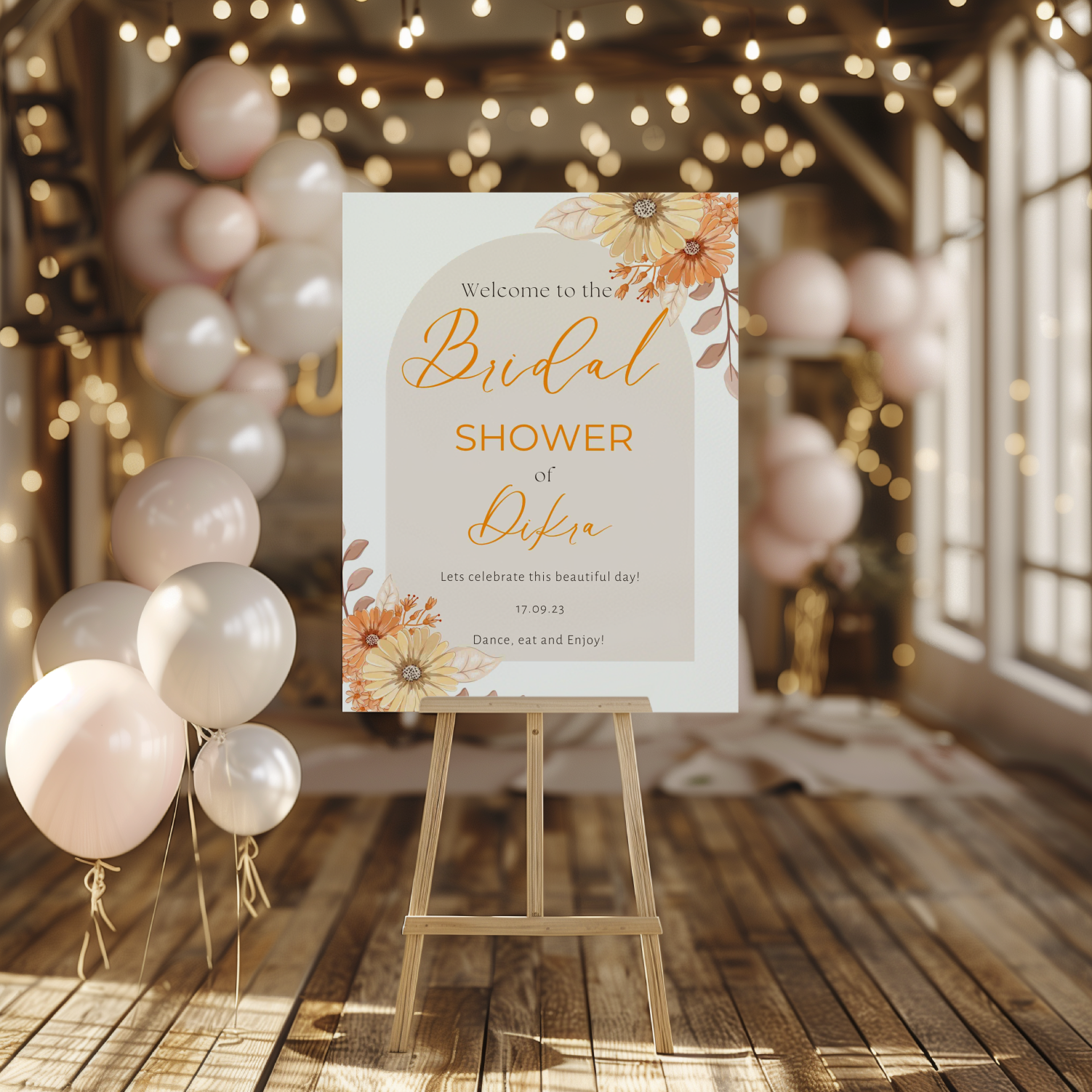 Welkomstbord Bridal Shower - Beige Boog Met Oranje Bloemen